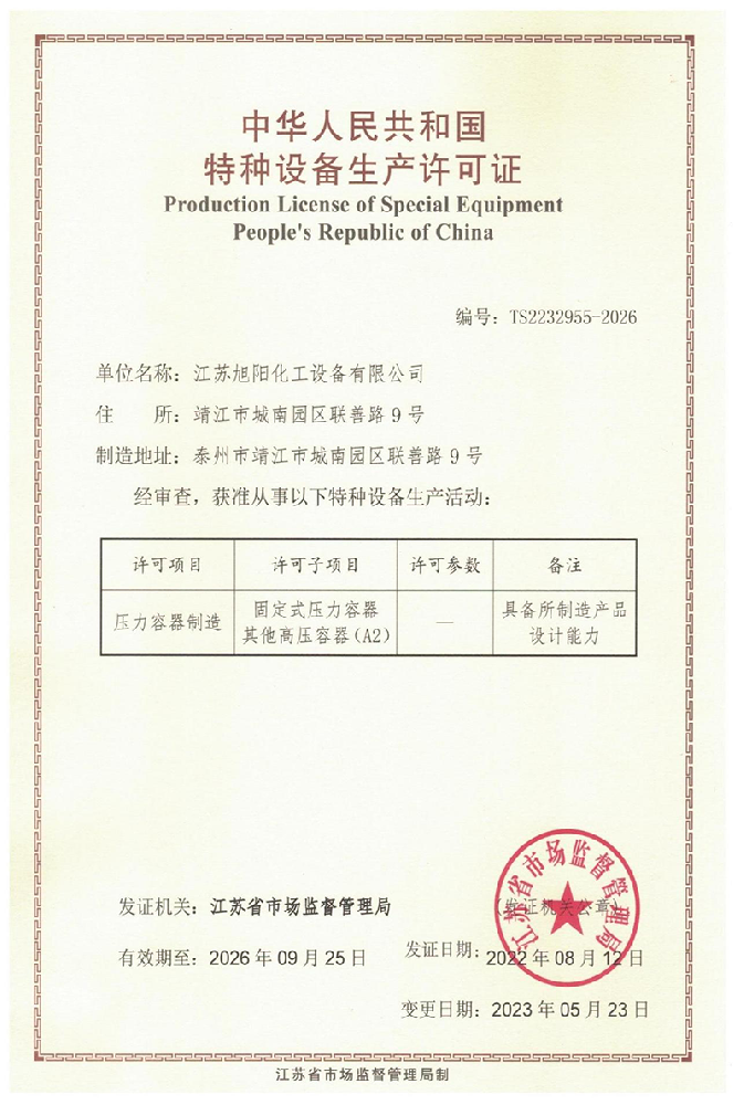 江蘇旭陽化工設(shè)備有限公司專業(yè)從事各類化工、環(huán)保、制藥、發(fā)酵、食品、新材料、鋰業(yè)等項目設(shè)計、制造及壓力容器的生產(chǎn)制造,是一家集研發(fā)、生產(chǎn)和進出口貿(mào)易于一體的高科技企業(yè)。